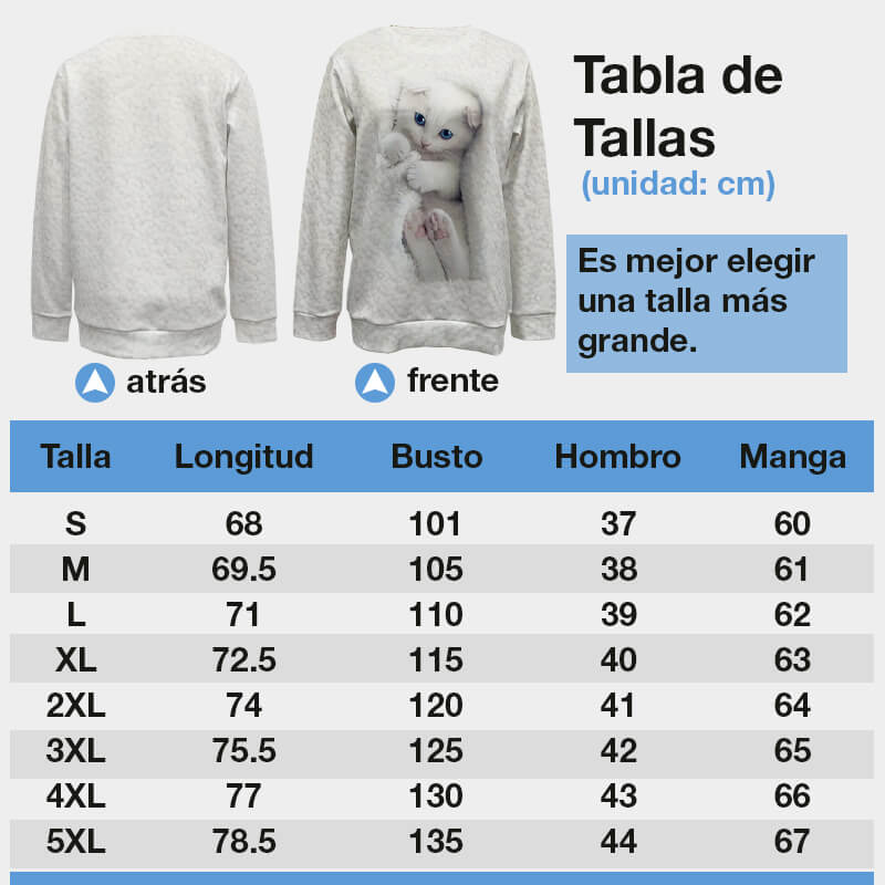 Consejos: este suéter es de corte ajustado, se recomienda tomar una talla más grande de lo habitual