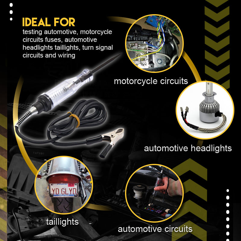 - Equipo ampliamente utilizado para probar circuitos en el rango de 3-24 V. Ideal para probar circuitos, fusibles, faros delanteros, luces traseras, circuitos de intermitentes y cableado en automóviles y motocicletas.