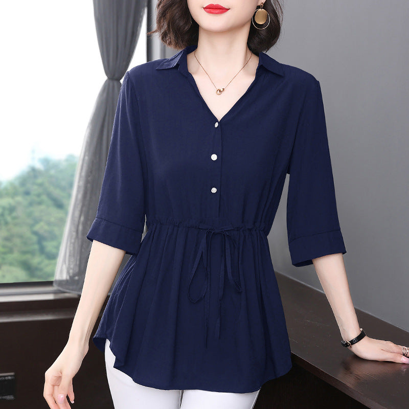 Camisa holgada con cuello en V de longitud media para mujer