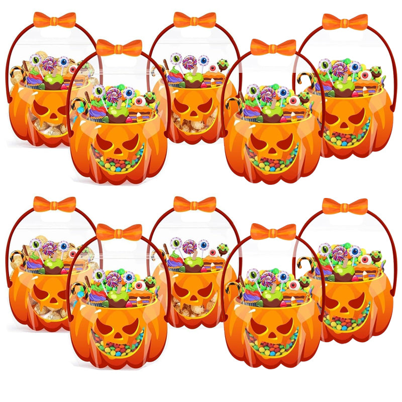 DESIGN FESTIVO A FORMA DI ZUCCA – Rendi ogni distribuzione di dolciumi più emozionante con un design trasparente a forma di zucca che unisce divertimento e funzionalità. Il look festivo aggiunge un tocco di fascino halloweeniano, consentendo al contempo di vedere i dolciumi all'interno, rendendo i sacchetti decorativi e pratici per feste, dolcetti o scherzetti o confezioni regalo.