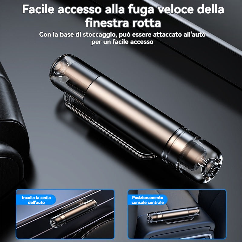 🚨 Martello di emergenza per auto con taglierina per cinture di sicurezza 🔪 | La punta in tungsteno frantuma il vetro stratificato | Compatto 96 mm | Salva vite in caso di ribaltamento e immersione in acqua