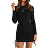 Este vestido básico de cuello redondo y manga larga ya no es aburrido gracias a los elegantes detalles fruncidos con cordón, que realzan la sensación de diseño y le dan un toque de glamour.