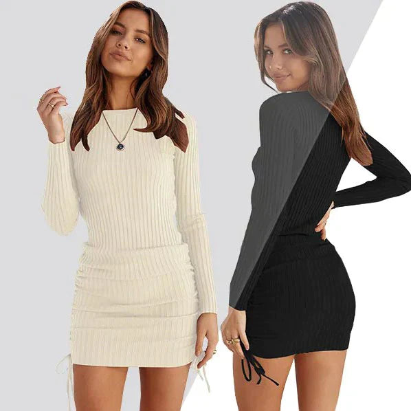 El paquete incluye: 1 mini vestido elegante de punto acanalado elástico para mujer.