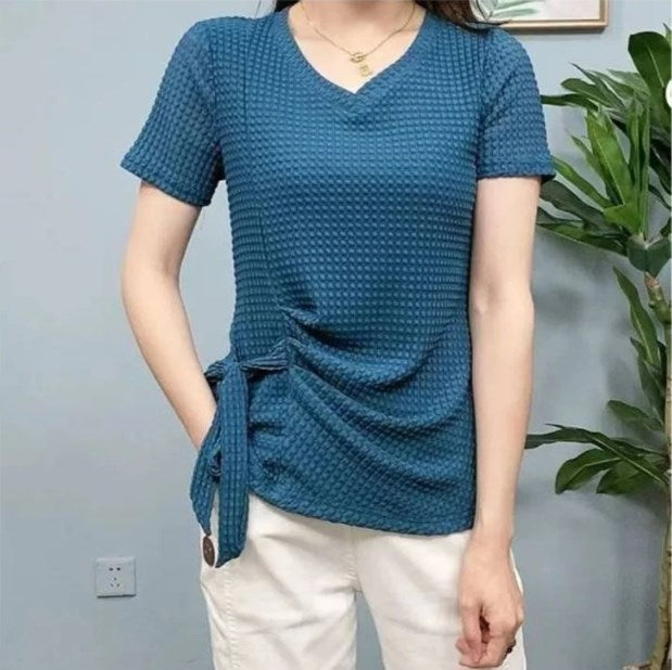 Manga corta plisada con cuello en V de moda