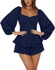 Sueña con noches románticas de verano con este mameluco encantador con mangas largas de obispo y cuello cuadrado.