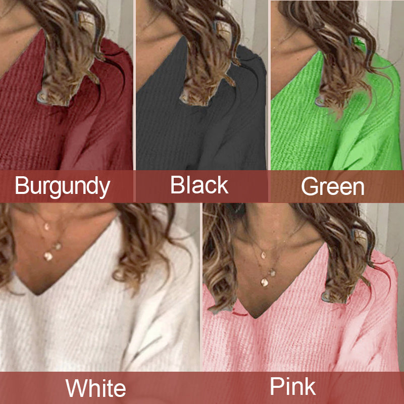 De Color sólido de cuello en v manga larga de punto de la parte de arriba