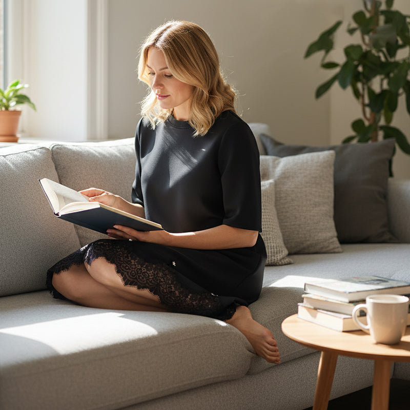 ELEGANTE ENCAJE EN LOS BORDES: El delicado encaje en los bordes añade un toque de sofisticación y feminidad. Estos intrincados detalles realzan la sencillez de la silueta, convirtiéndola en una prenda destacada, adecuada tanto para ocasiones informales como semiformales.