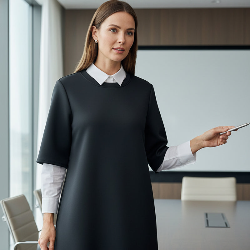 MANGAS MEDIAS CÓMODAS: Las mangas hasta el codo proporcionan una cobertura cómoda y permiten moverse con facilidad. Este práctico elemento de diseño ofrece un aspecto equilibrado, elegante y adecuado para diversos entornos y estaciones del año.